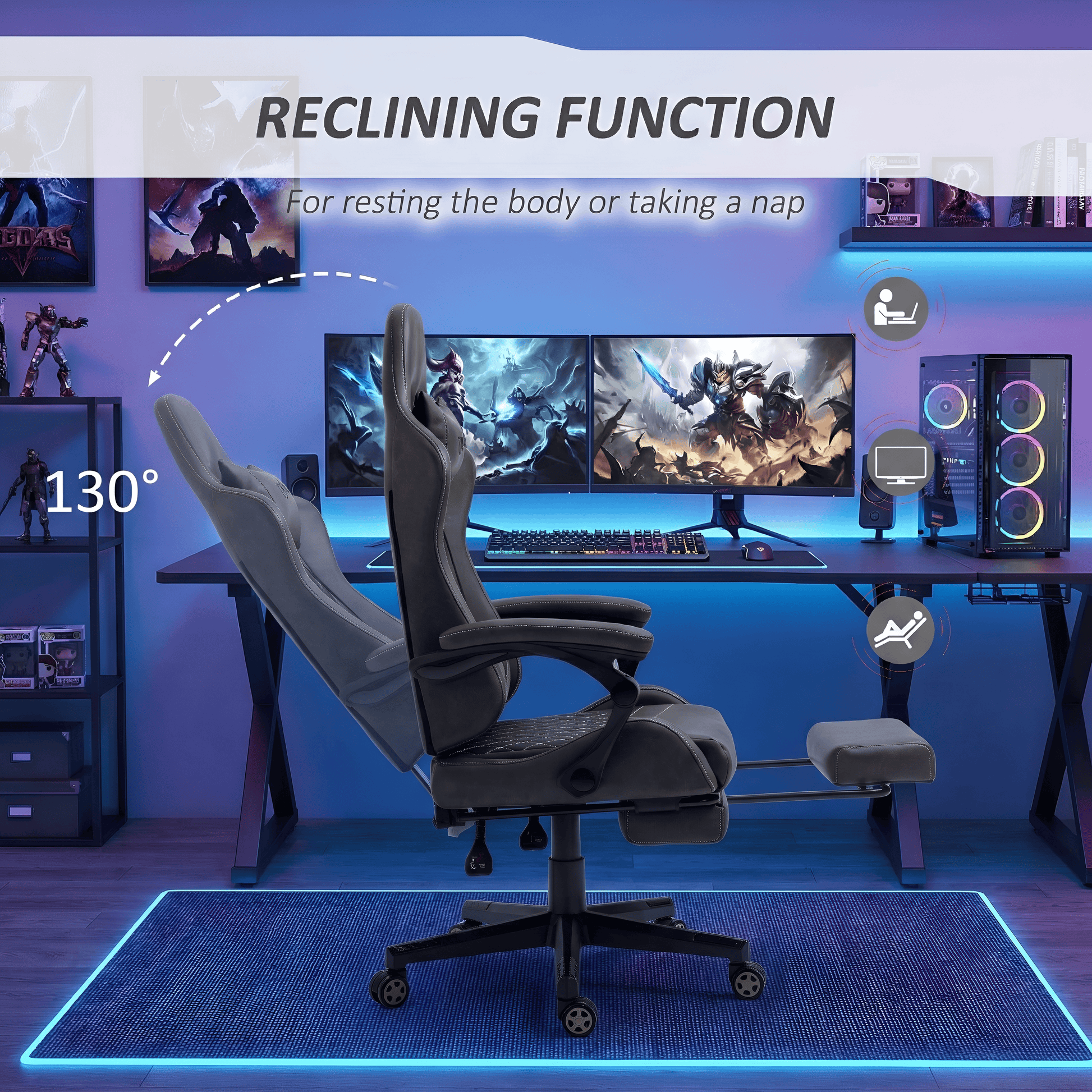 Versatile Recline Function: Transition effortlessly from work to rest. The backrest features a reclining function up to 130°, making it ideal for gaming, watching media, or even taking a nap.